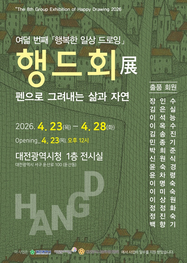 여덟 번째 행복한 일상 드로잉에서 진행하는 행드회전이 대전 시청 1층 전시실에서 진행 되고 있다. 이번 전시는 4.23 ~28일 까지 진행되며, 이번 행드회 전시회는 펜으로 그려내는 삶과 자연이라는 따뜻한 주제속에서 16명 작가들이 그려 낸 40여점의 다양한 작품들을 전시 중이다. 기자는 전시회를 찾았다가 행복한 일상 드로잉에서 지도교수로 역임중인 백향기 대전창조미술협회장을 만날 수 있었다.